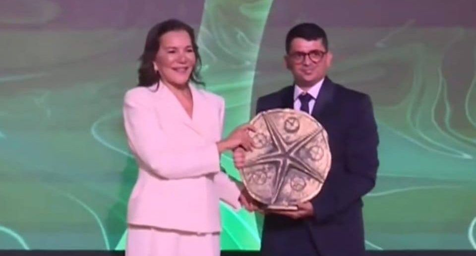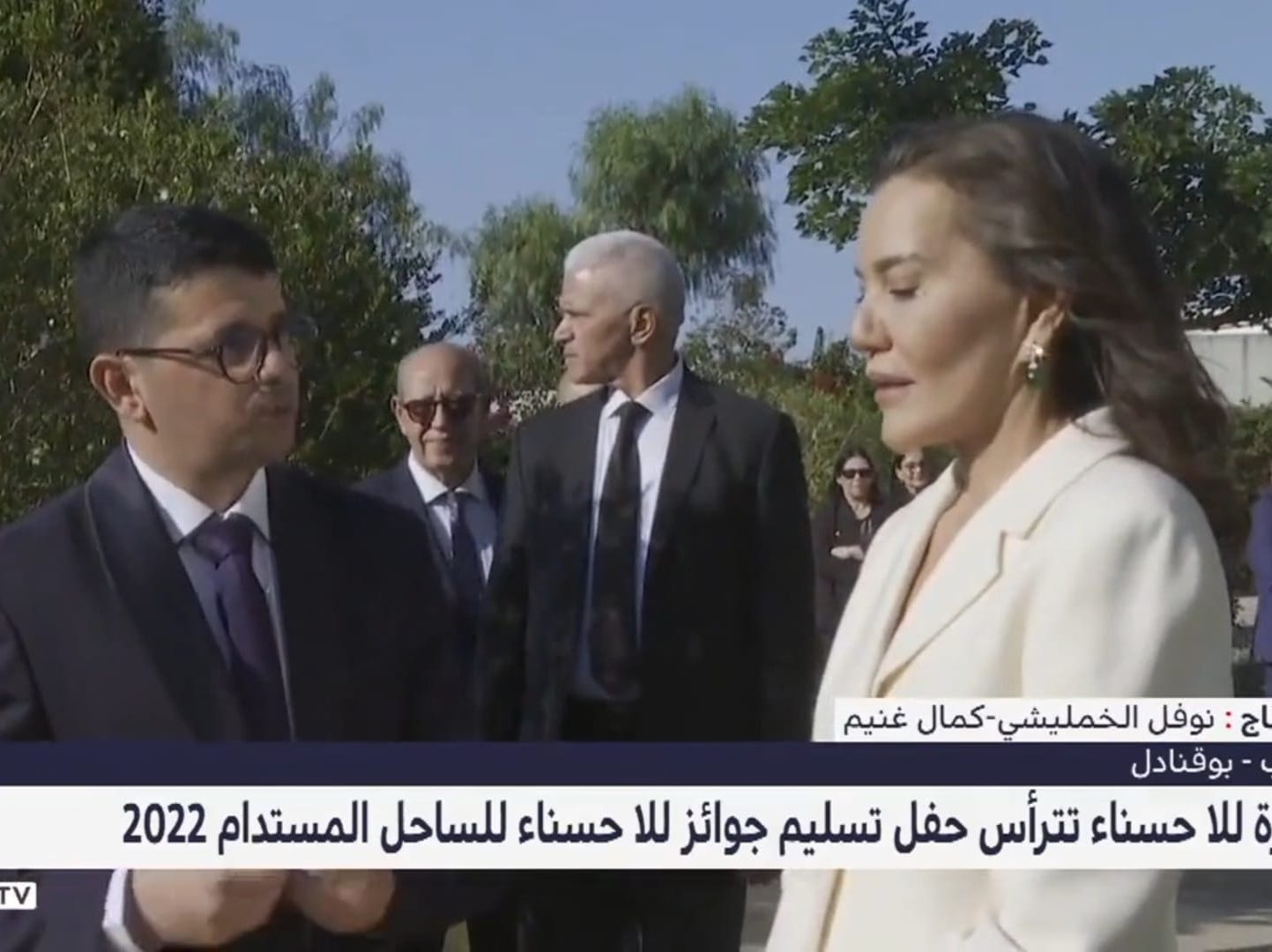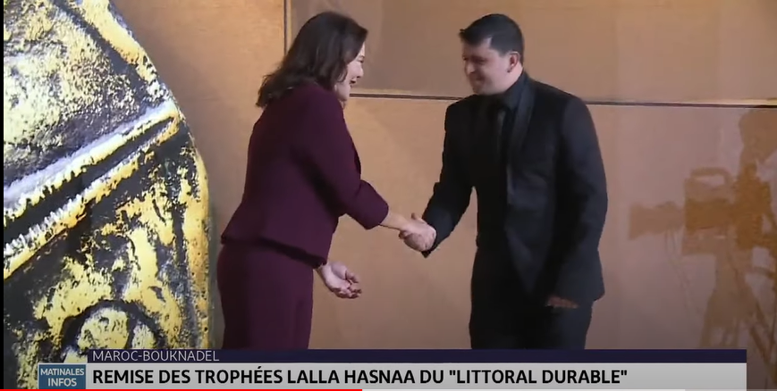 اثناء تقديم شروحات لصاحبة السمو الاميرة لالة حسناء حول مجهودات جمعية أبطال الفنيدق للصيد تحت الماء وحماية البيئة اثناء حفل تسلم جوائز لالة حسناء للساحل المستدام